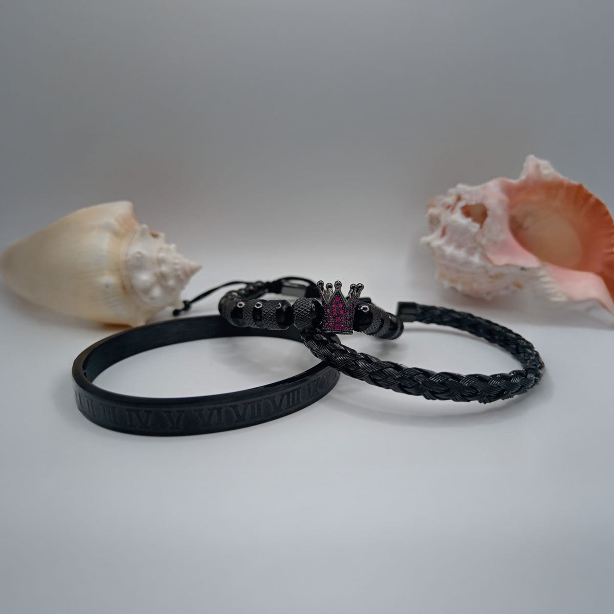 Conjunto de brazaletes de lujo acero quirúrgico, color negro.