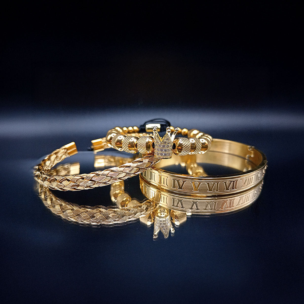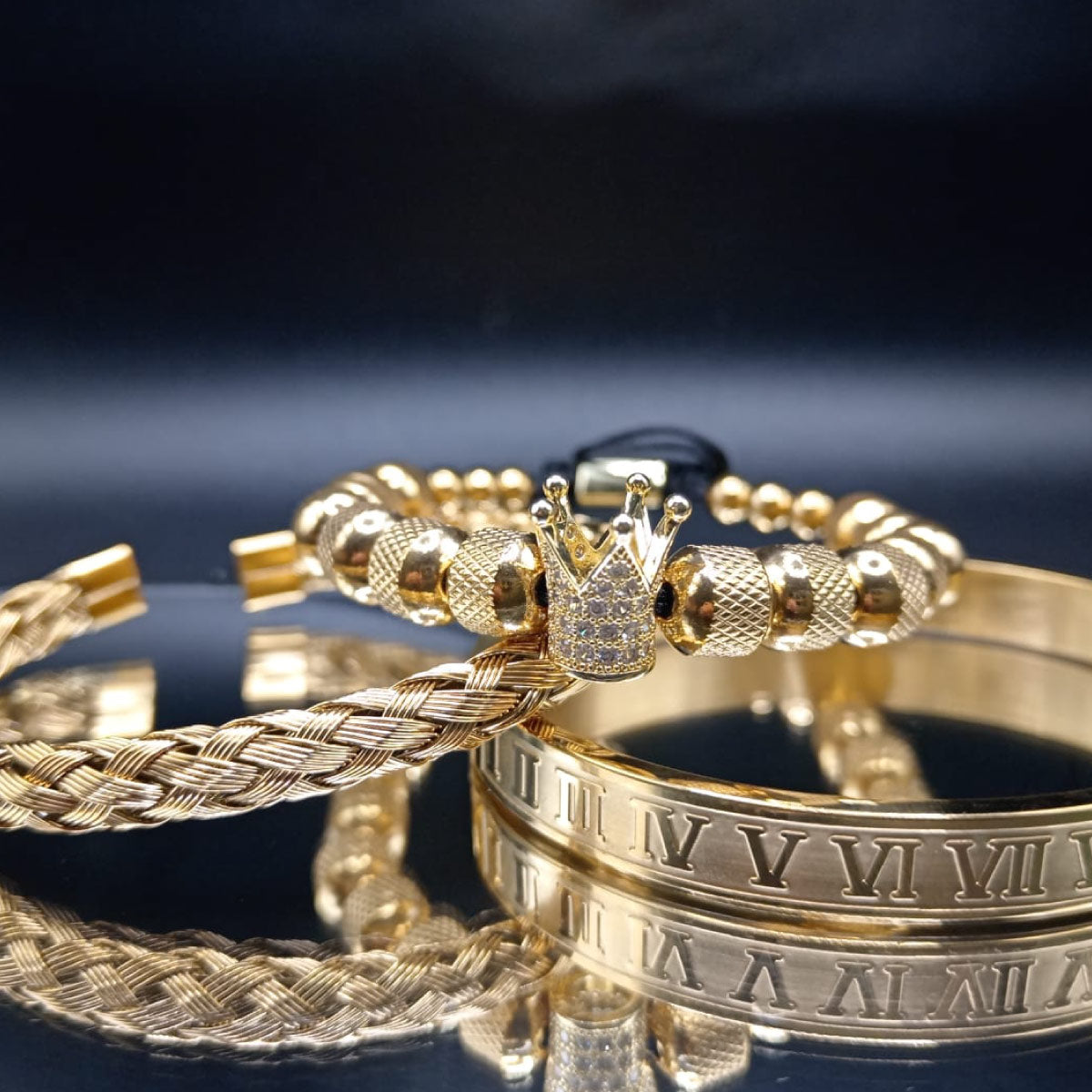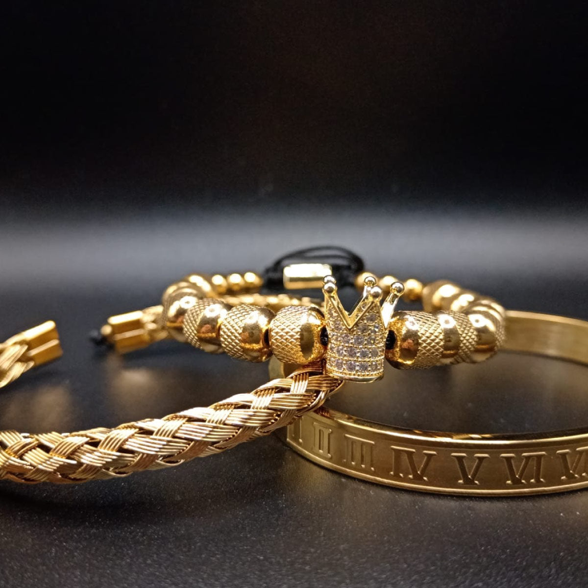 Conjunto de brazaletes acero quirúrgico en dorado.